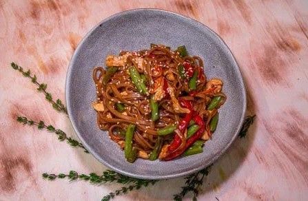 Лапша Соба с курицей и овощами